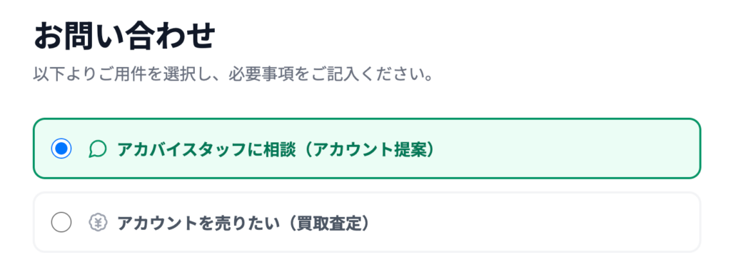 - お問い合わせページから「アカウントを売りたい」旨を連絡