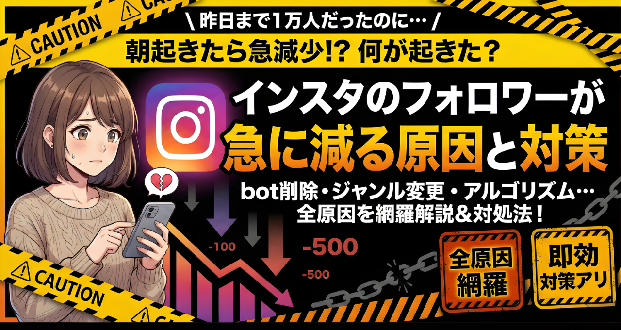 Instagramのフォロワーが急に減る。これは想像以上にメンタルに来ます。コツコツ積み上げてきた数字が、何もしていないのに減っていく。「何かまずいことをしたのか」「アカウントに問題があるのか」と不安になるのは当然です。